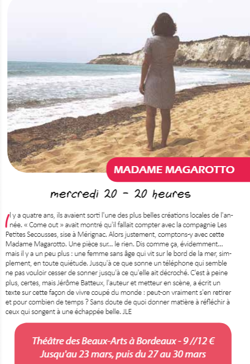 - Créé au Théâtre en Miettes lors de la 15aine de la Jeune Création